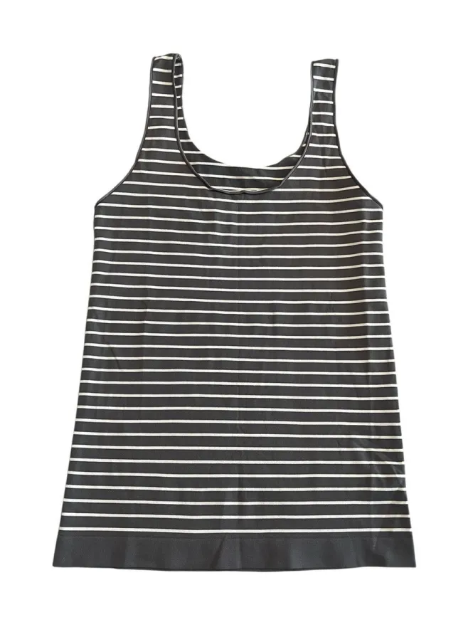 In fantastic preowned condition. There are no issues or flaws. Top of shoulder to bottom hem measurement is approximately 23 inches. Armpit to armpit measurement is approximately 13.5 inches. The Shimera Tank Top is a versatile women's activewear shirt in a size M, with a beige and white striped pattern perfect for summer or spring seasons. Made of a comfortable and breathable microfiber fabric blend, this sleeveless top features a round neckline and easy-care pullover closure. Ideal for various activities like gym training, yoga, or running, the tank top offers stretch and support for athletic fit, making it a stylish and practical choice for active women looking for quality activewear. Item9347