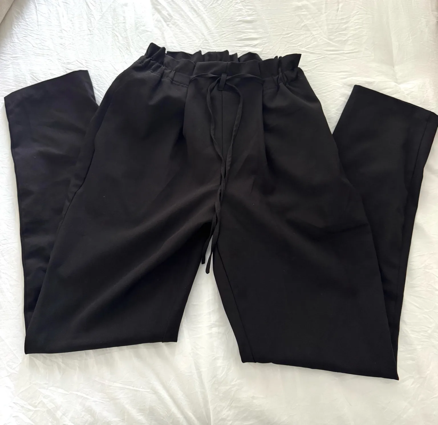 Drawstring waistband, pockets, fabric material. Super comfy and cute!