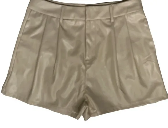 Shinestar High Waist Faux Vegan Leather Beige Shorts. Size L NWT Approximate Measurements Waist:... Show more
