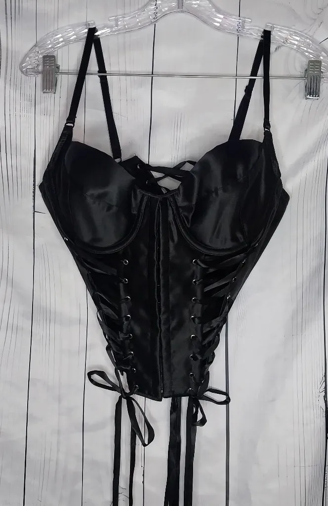 Shirley Of Hollywood Black Satin Lace-Up Corset Top With A Sweetheart Neckline Size 38 - $40 - From Christina