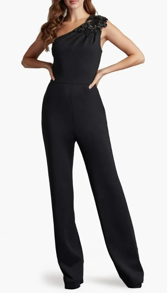 SHO by Tadashi Shoji Beaded Appliqué One-Shoulder Jumpsuit - New w/ Tags Size - XL Color - Black... Show more