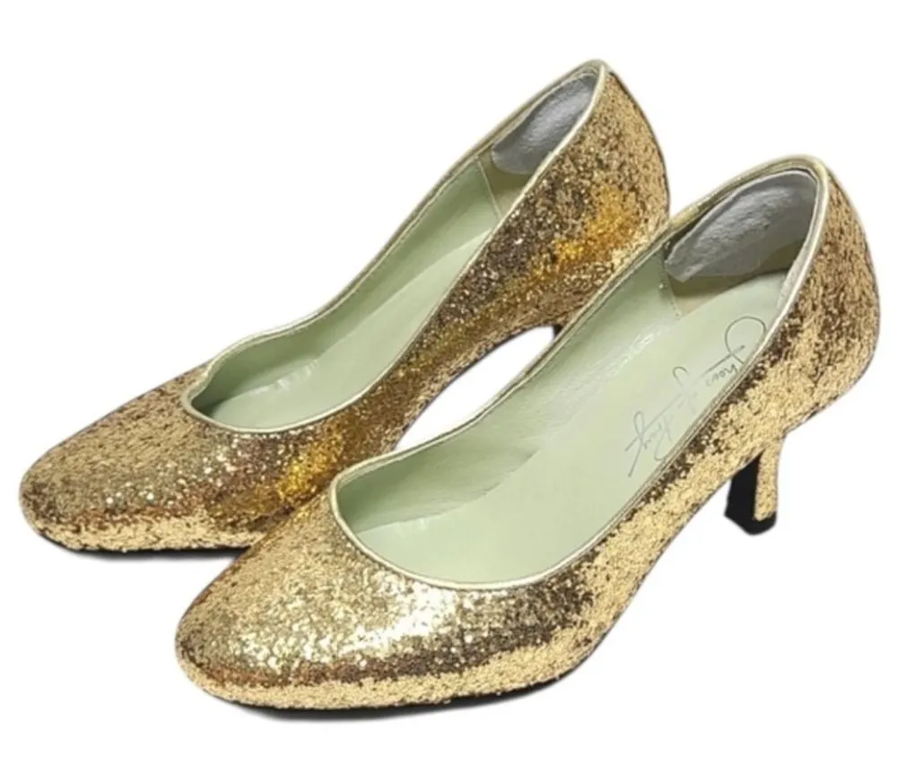 Step into the spotlight with these dazzling gold glitter kitten heels! These shoes aren't just footwear; they're a statement, a sprinkle of magic for your feet. The shimmering gold glitter catches the light with every step, ensuring you'll turn heads and sparkle wherever you go. The elegant kitten heel provides just the right amount of lift, offering a comfortable and stylish silhouette that's perfect for dancing the night away or making a grand entrance. Color: Gold Style: Pump Department: Women Upper Material: Glitter, Synthetic Type: Heel Heel Style: Kitten Toe Shape: Round Toe Heel Height: Low (1-1.9 in) Pattern: Solid Closure: Slip On Features: Glitter, Sparkly, Party, Evening Wear, Comfort Model: Glitter Kitten Heel Pump Keywords: gold glitter heels, kitten heels, sparkly shoes, party heels, evening shoes, dress shoes, pumps, gold shoes, glitter pumps, women's heels, formal shoes, special occasion shoes, kitten heel pumps, glam heels