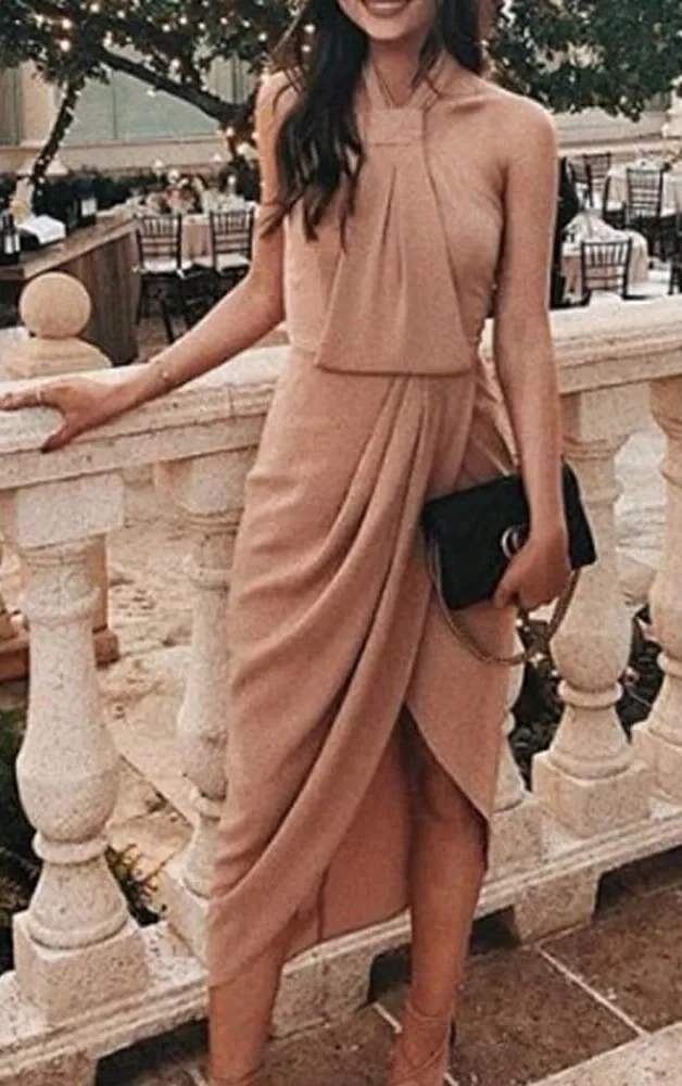 Shona Joy Core Taupe Knot Dress Sz. 4 Retail $280 Excellent condition! Has recently been dry cleaned. NOTE: Stock photo is not exact color--please refer to pictures of actual dress Measurements Taken: 53"L,15.5"p/p, 13" waist (flat)