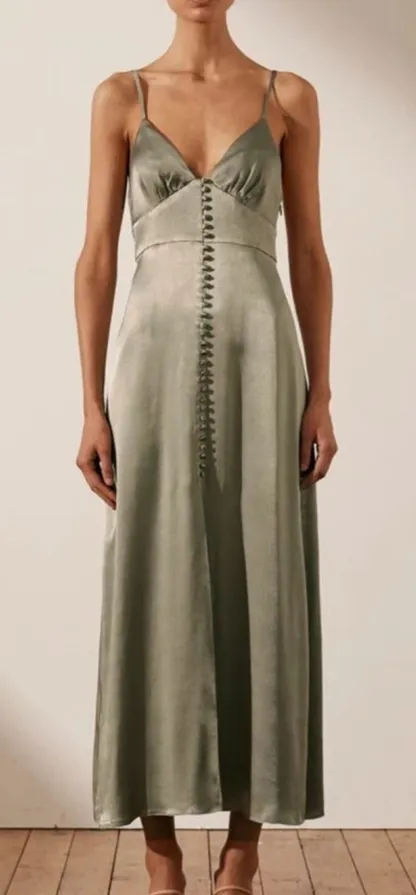 Stunning Shona Joy maxi / midi dress in a silky sage green with a classic bias-cut silhouette. Featu... Show more