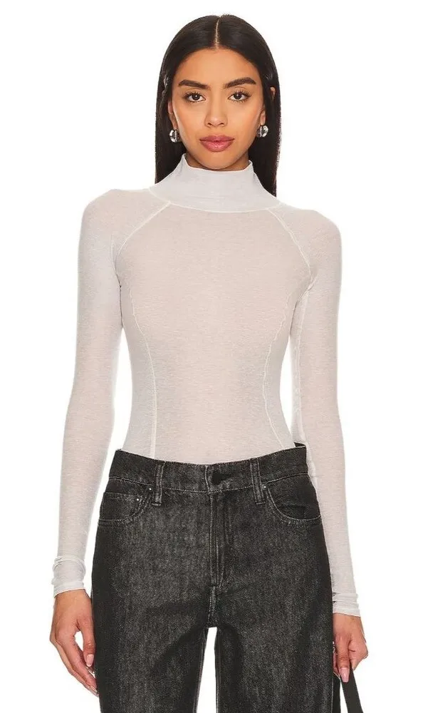 Shoreditch Ski Club Kamila base layer T-shirt The Kamila Base Layer is pure versatility, made from soft-touch Lenzing TENCELTM in a semi-sheer base layer, it's the ski under-layer you need or a city outfit essential. Mockneck styling Lightweight jersey fabric Hand wash 70% lyocell, 30% wool Made in Portugal Revolve Style No. SLUR-WS5 Manufacturer Style No. SSCJ002D Color: Light Grey MSRP: $140.00 Revolve Model Info Jasmine is 5' 9'' and is wearing a size XS Waist 24'' Bust 32'' Hips 34'' Features: • Totally Sold out on Revolve! Size: Womens XS Condition: New With Defects tiny repair at lower front (photographed) Tags: blouse, shirt, office, professional, revolve, fall, autumn, knit, holiday, Christmas, office, professional, teddy, bright, pointelle, crew neck, winter, cabin, outdoor, turtleneck