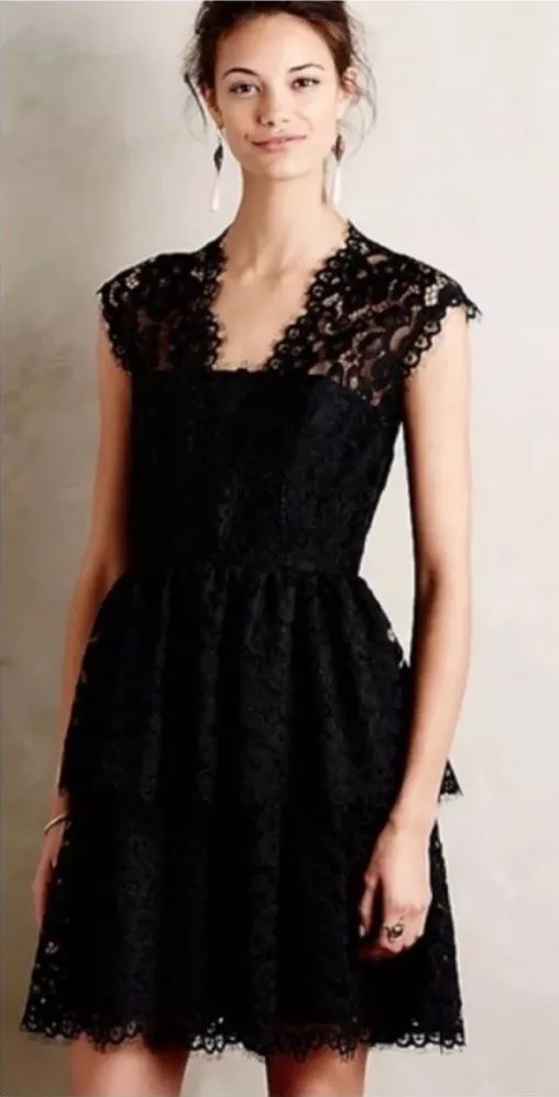 Questions? Leave a comment below! Excellent like new condition Shoshanna black lace tiered dress. Lined as shown, sleeveless. Great for cocktail parties, date nights, wedding guest etc! 324