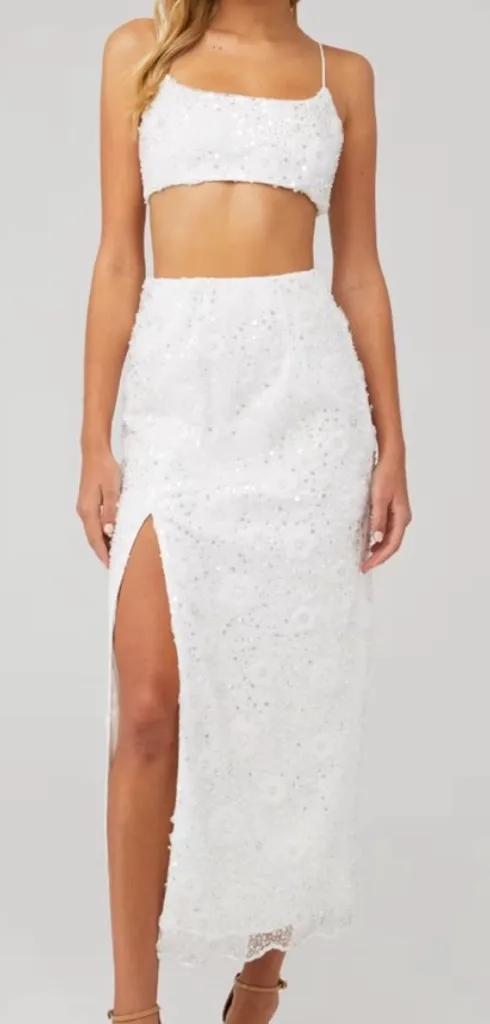 This elegant white lace top & skirt is perfect for any occasion. Its delicate design adds a touch o... Show more