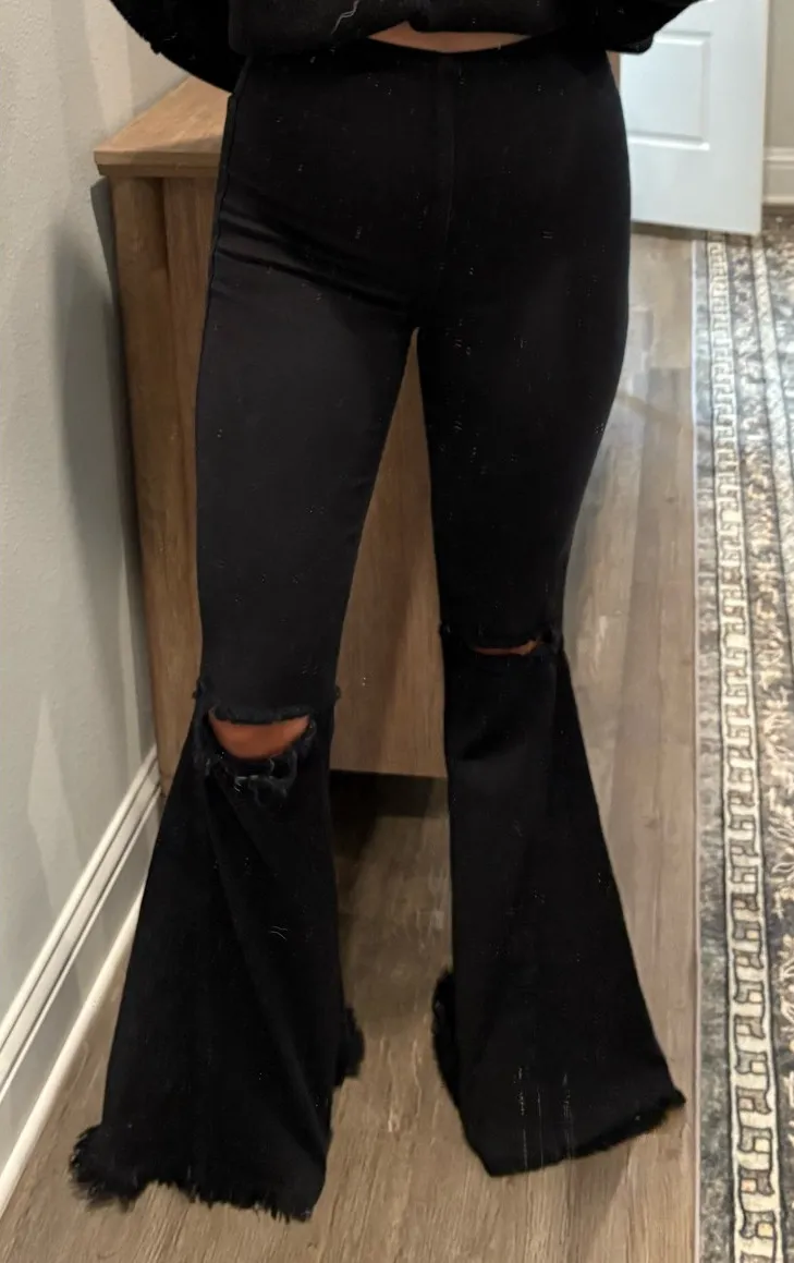 Elastic waist band. Slit in both knees Seams pulling on back pocket. Pictured.