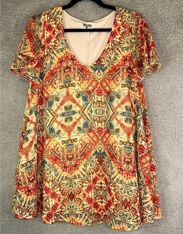 Show Me Your Mumu Dress Women's Small Santiago Sandstone Kylie Bohemian Hawaiian Mini Style# MF5-26... Show more