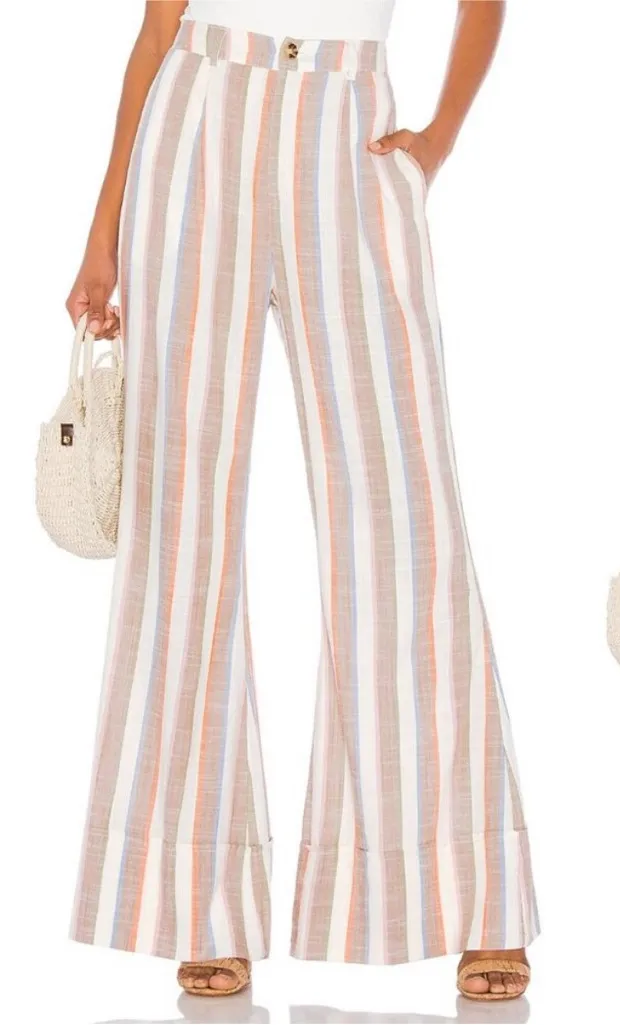 Flare pants. Linen blend Wide leg with stripes Cuffed hem Stretch waistband Great condition Que... Show more