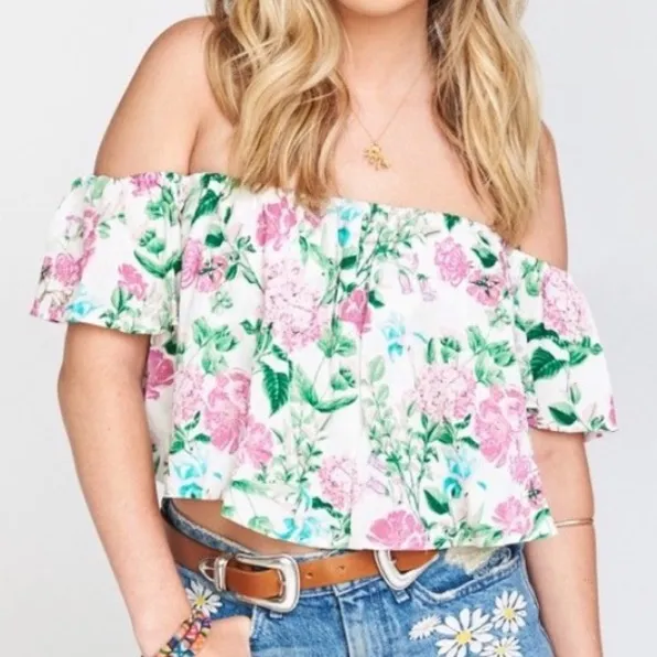 EXCELLENT CONDTION! SHOW ME YOUR MUMU ELLA CROPPED TOP / BLOUSE CAN BE WORN OFF OR ON THE SHOULDER D... Show more