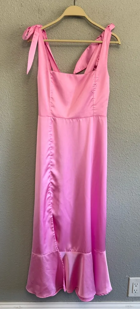 Shoulder straps self tie to adjust Smocked back Front side slit Show Me Your MuMu Garden Pink Midi... Show more