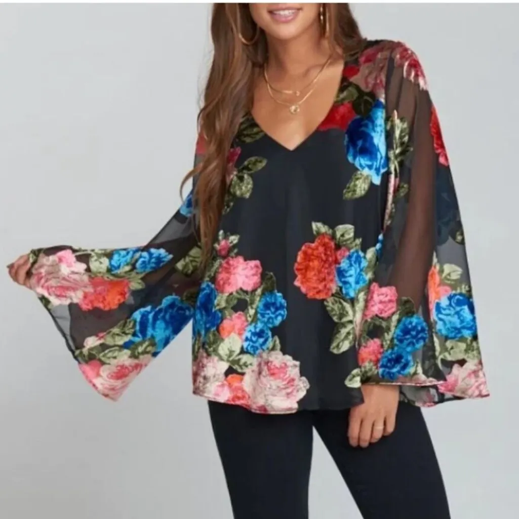 Show Me Your MuMu Hippie Dippie Floral Bell Sleeve Velvet Top Black - $49 - From Cassie