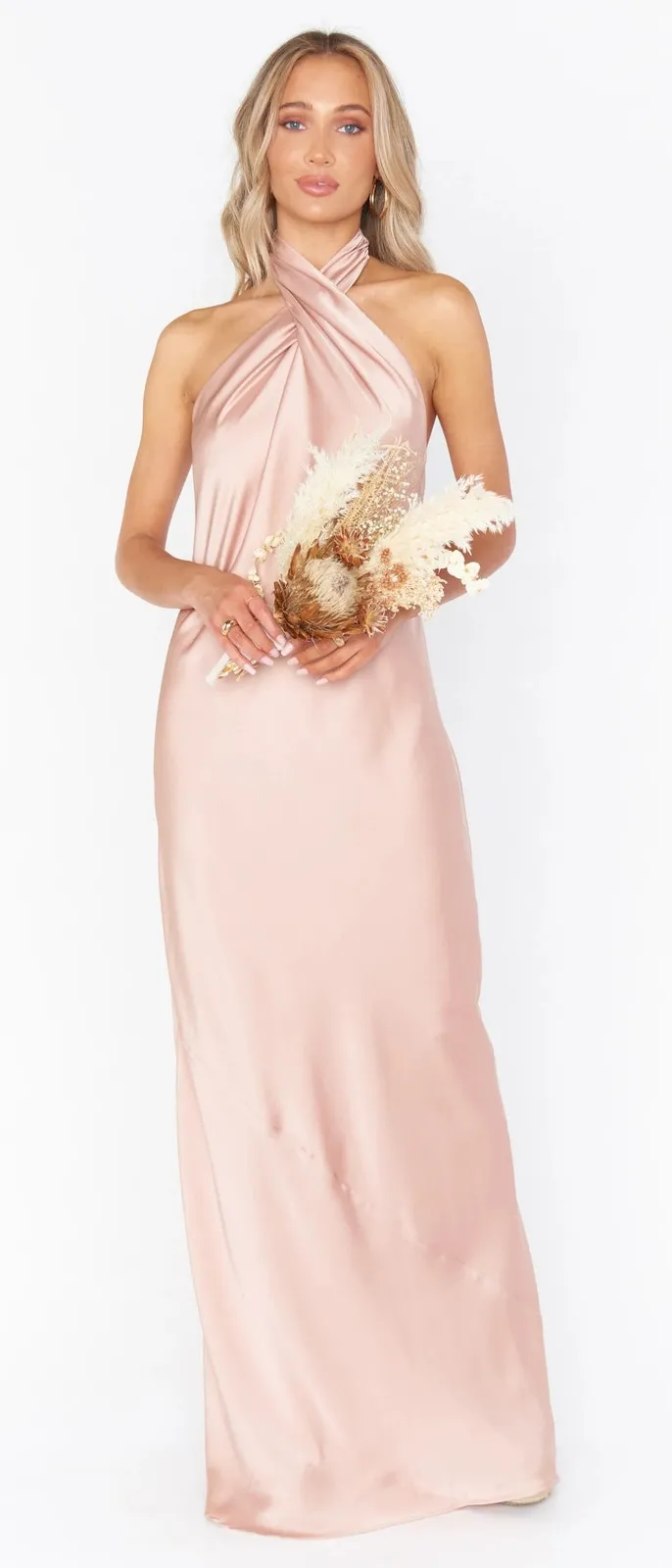 Show Me Your Mumu Jasmine Halter Maxi Dress Rose Gold Luxe Satin New without tags Large The Jasmine... Show more