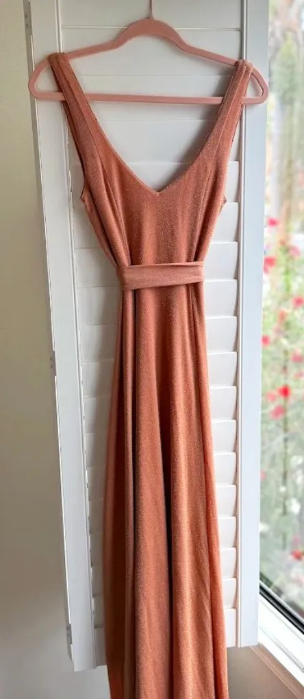 Show Me Your MuMu Jenn Maxi Dress Peachy Coral with Gold Metallic Sparkles in size Small From the we... Show more
