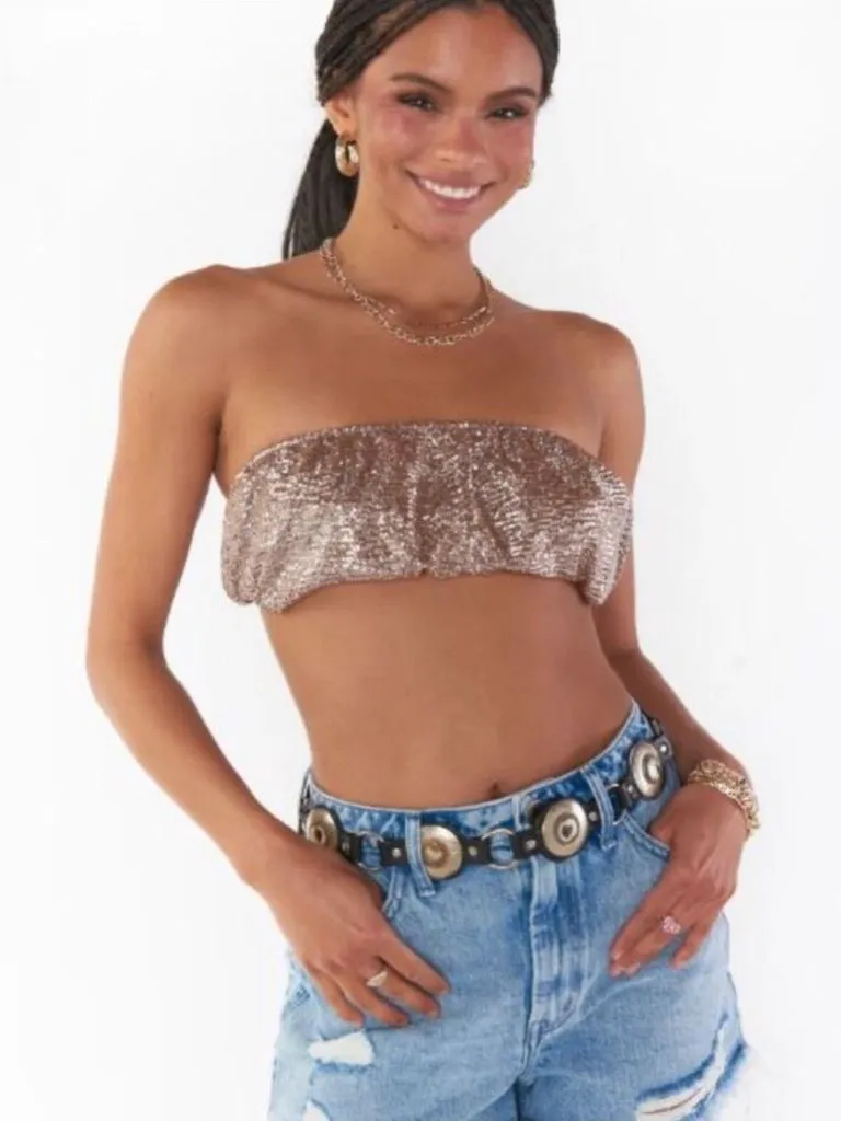Show Me Your MuMu NWT Women’s Micro Tube Silver Confetti Top Rose Gold Size XS. Shimmer in style wi... Show more