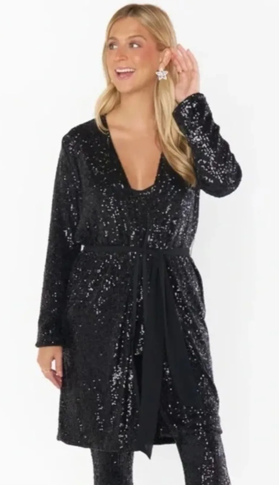 You'll have them screaming ENCORE in this too good to be true duster! This sequin duster has black s... Show more