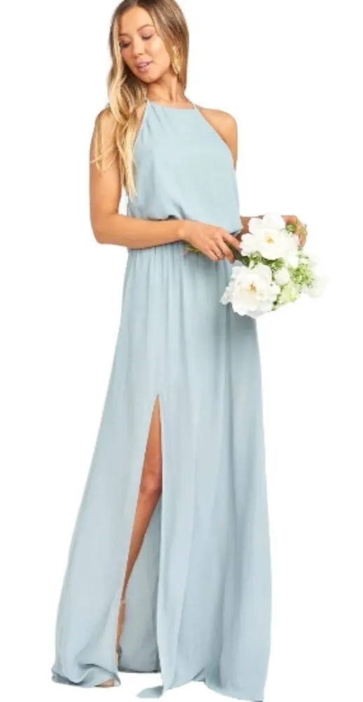 Show Me Your Mumu Bridesmaid Heather Halter Dress in Silver Sage Crisp Size XXL Condition is Brand... Show more