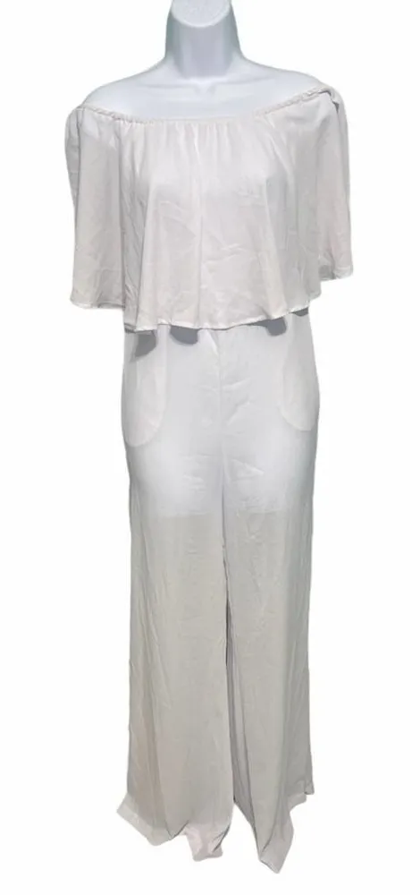 Show Me Your Mumu Sheer Flowy Jumpsuit Pants One Piece Off Shoulder White XXS Size: XXS- no size... Show more