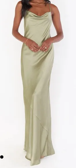 Show Me Your Mumu Tuscany Maxi Slip Dress Gown In Moss Green Luxe Satin Size Large NWOT Brand new w... Show more