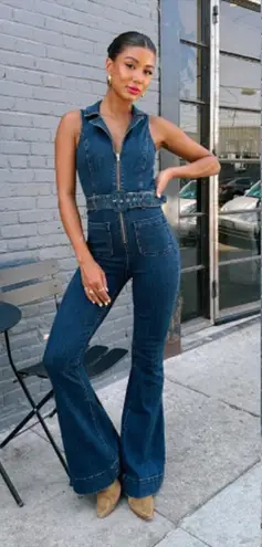 Show Me Your Mumu Women’s Jacksonville Blue Cotton Sleeveless Flare Jumpsuit Size Large Good preow... Show more