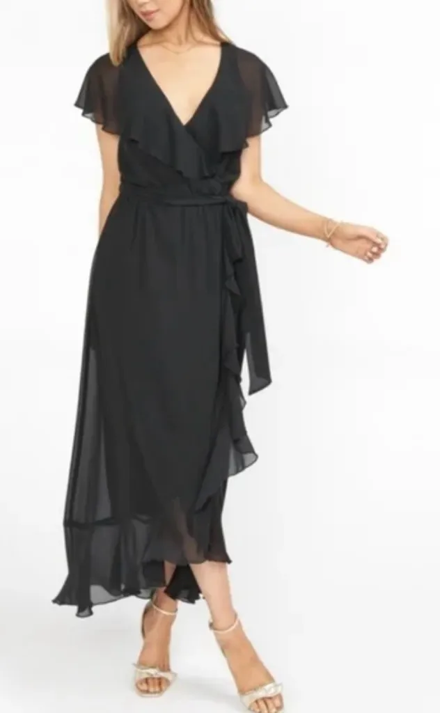 Show me your Mumu Women's Jess Black Ruffle Midi Dress Size Medium The Jess Ruffle Midi Dress is an... Show more