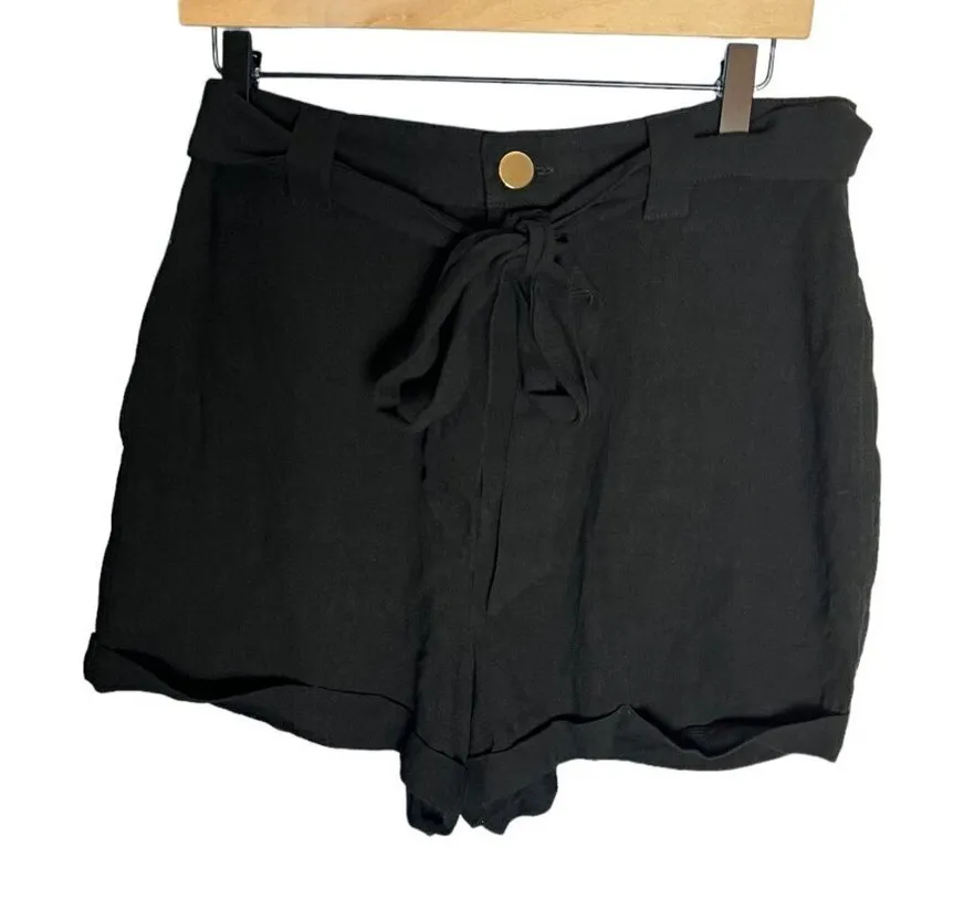 Show Me Your Mumu Women's L Hadley High Rise Linen Shorts Black Coastal Casual Size L Waist: 32 Le... Show more
