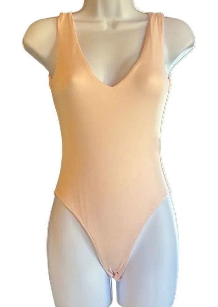 Showpo Womens 2 Pink Deep V Snap Closure Bodysuit Classic v neck bodysuit Fully lined Snap closures Flaw: loose threading on inside of neckline, pictured 90% polyester 10% spandex Pit to pit: 13" Waist: 11" Length: 25" Classic Sexy Casual Normcore Basic Staple Summer Vacay Vacation Resort