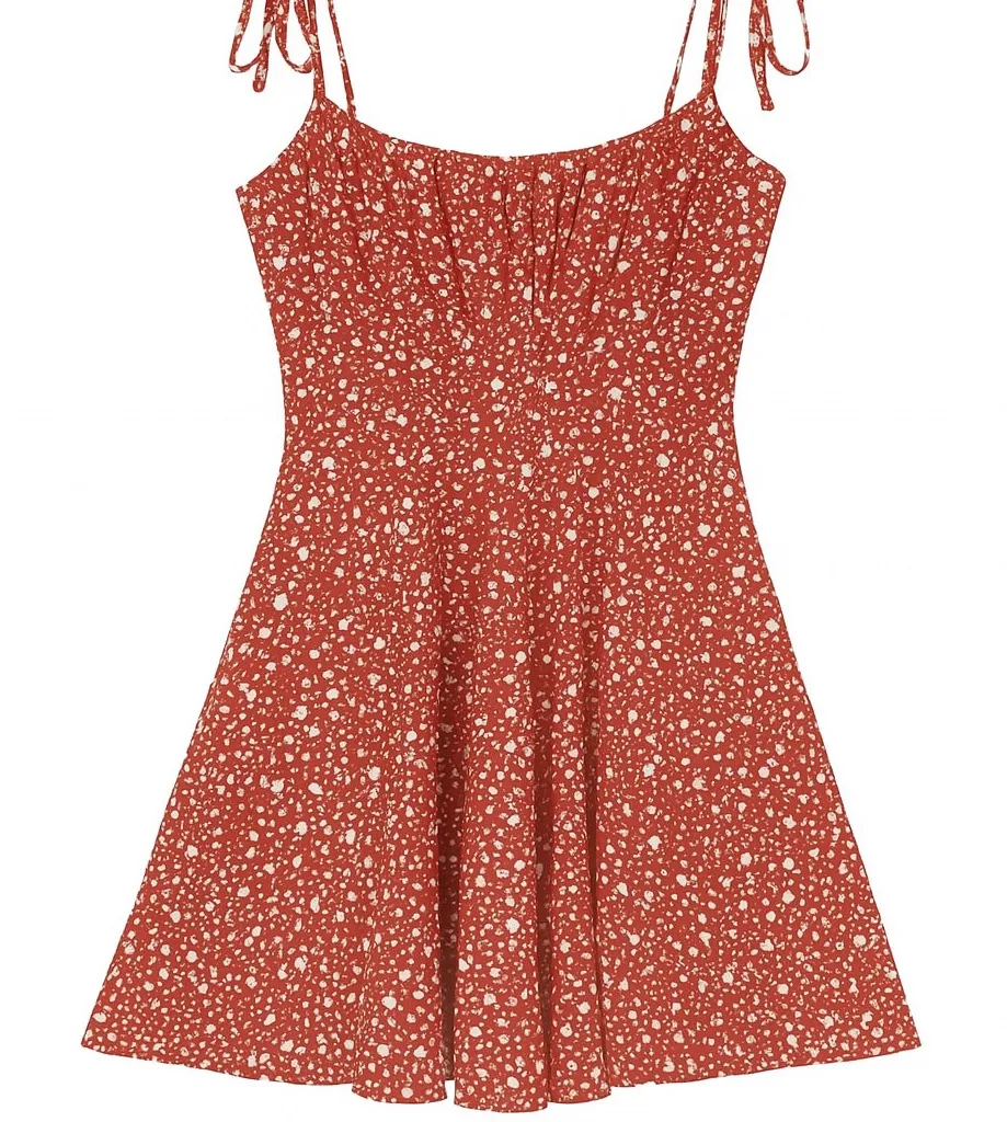 This Showpo mini dress in red is perfect for any occasion. The dress features a beautiful floral pattern and a square neckline with tie straps. The tie-strap closure adds a touch of elegance to the dress and makes it perfect for a casual day out or a special event like a wedding or party. The dress has a fit and flare style that flatters the body and creates a feminine silhouette. The dress is made in Australia and is available in size 2, which is perfect for petite women. The dress is suitable for summer, fall, and spring seasons and has straps as one of its features. The dress is not handmade, and it is perfect for those who love flower-themed clothing.