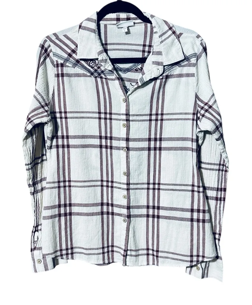 Shyannae White and Burgundy Long Sleeve Embroidery Country Shirt Size L Red Size L - $27 - From Tarah