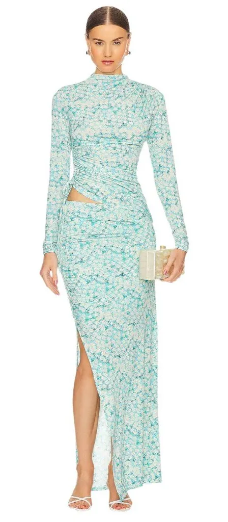 SIEDRÉS' 'Arni' dress is made from jersey patterned with an array of ditsy florals. Designed to hug your figure, it has drawstring ties to adjust the shape and coverage of the asymmetric cutout at the hip. Complement the split hem with strappy heels. Pull-on styling with elastic waistband Side cut-out and side slit Jersey fabric with ruched drawstring detail Machine wash Unlined 100% polyester Made in Turkey Revolve Style No. SRER-WD4 Manufacturer Style No. WRS24DR02MC Color: Multi MSRP: $401.00 Size & Fit We recommend purchasing your normal size – this design fits true to size Designed for a close fit Mid-weight, slightly stretchy fabric Size: Womens 38 Measurements taken flat across, Bust 16 in / 41 cm Hips 15 in / 38 cm Length 58 in / 147 cm Waist 14 in / 36 cm Condition: New With Tags Tags: night out, party, event, date night, sexy, bodycon, graduation, mini, cocktail, going out, bright colorful, fancy, wedding guest, sheath, brunch, bachelorette, simone, rush, sorority, designer, luxury, high end, runway