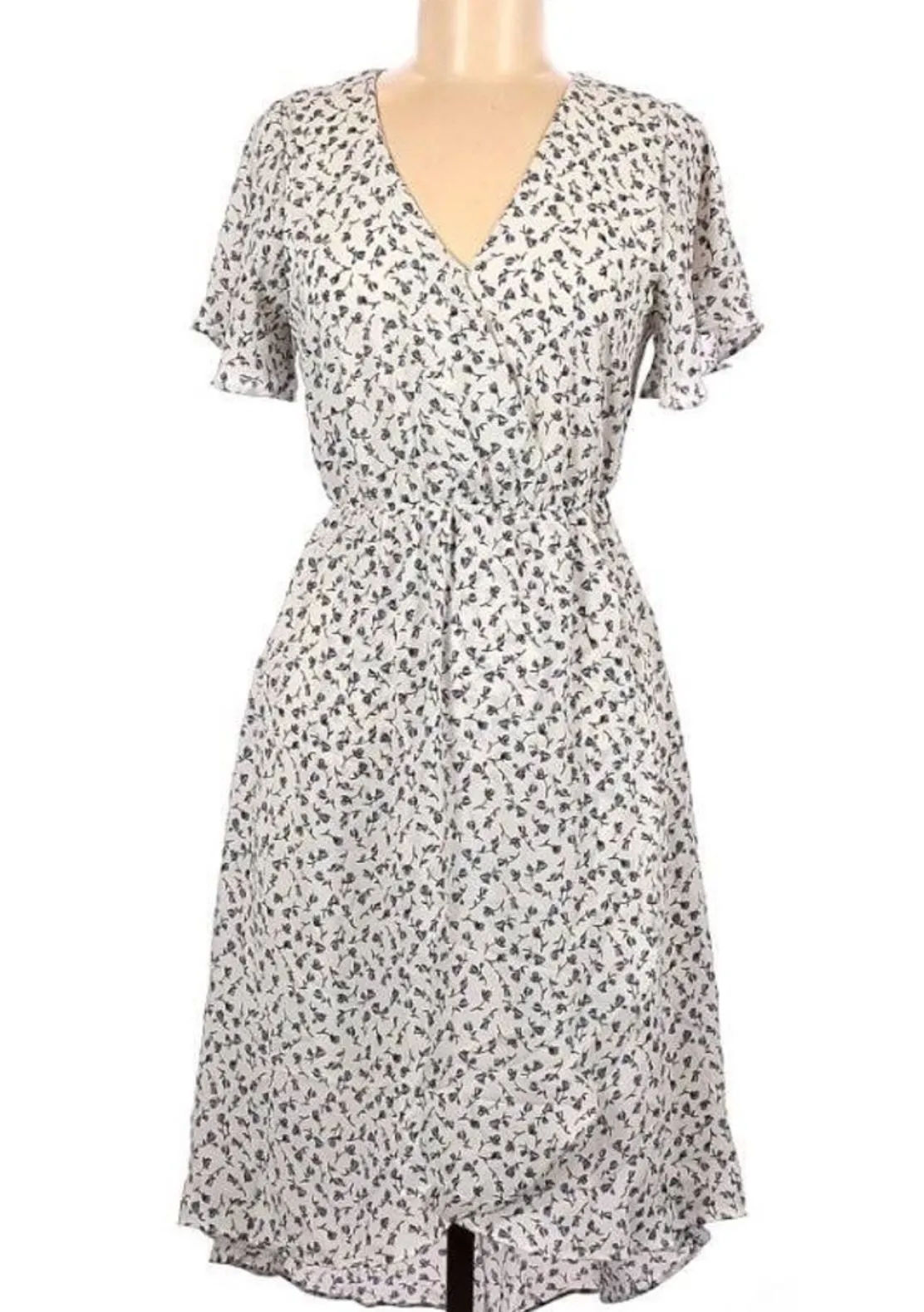 Floral print dress with wrap style top. Tie detail at the back, ties are attached to the dress. Size... Show more