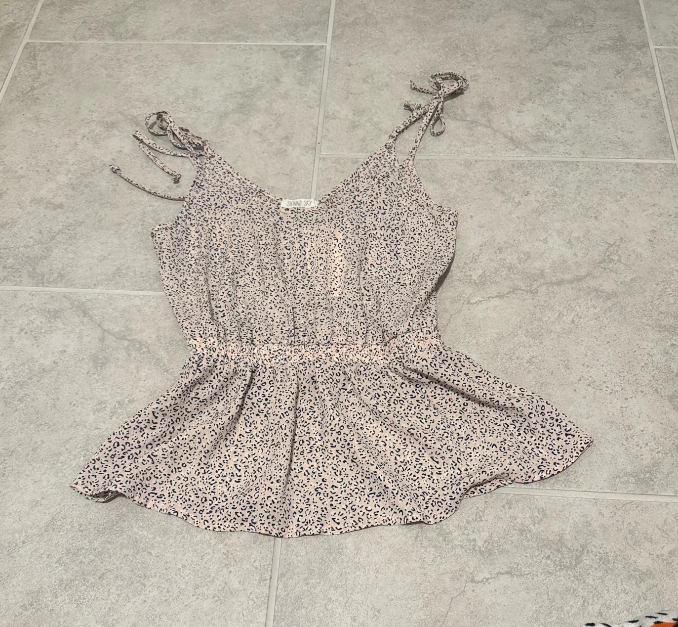 Elegant camisole with a playful animal print. Features adjustable straps for a tailored fit. Ideal f... Show more