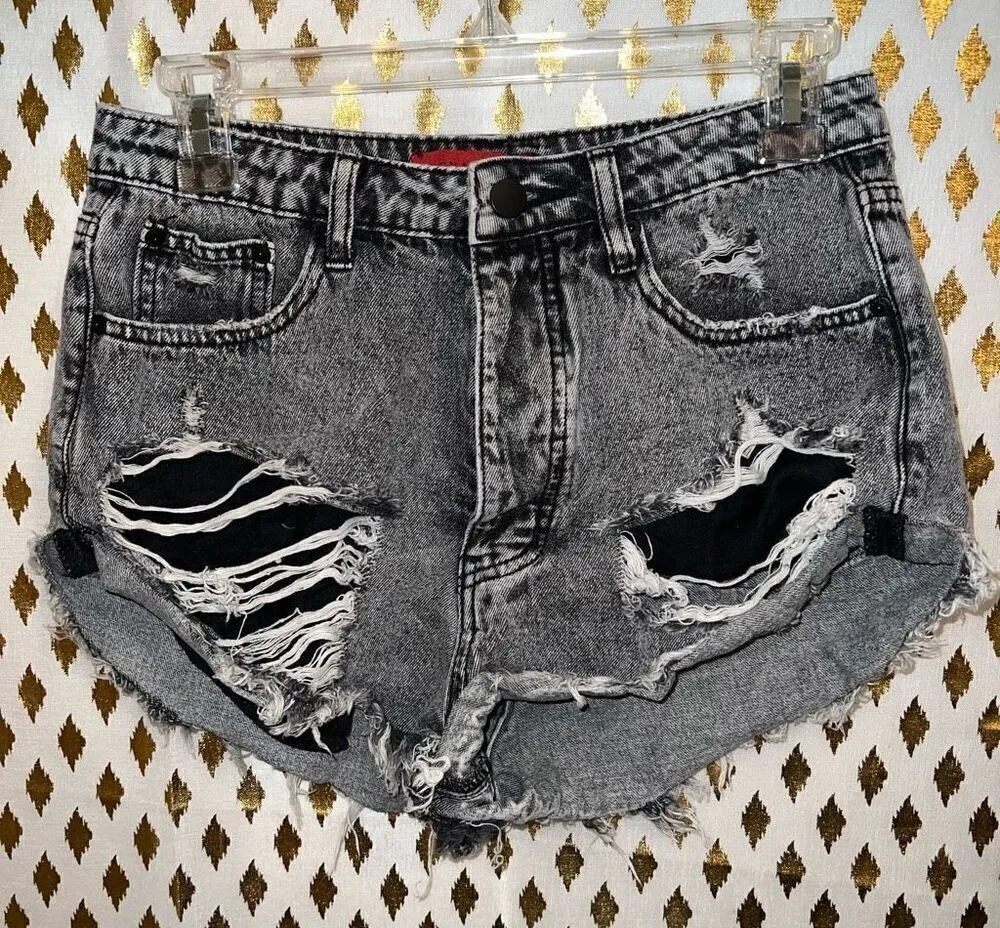 Signature 8 black acid wash distressed denim shorts high waist 5 button size M p Size M - $40 - From Cindy