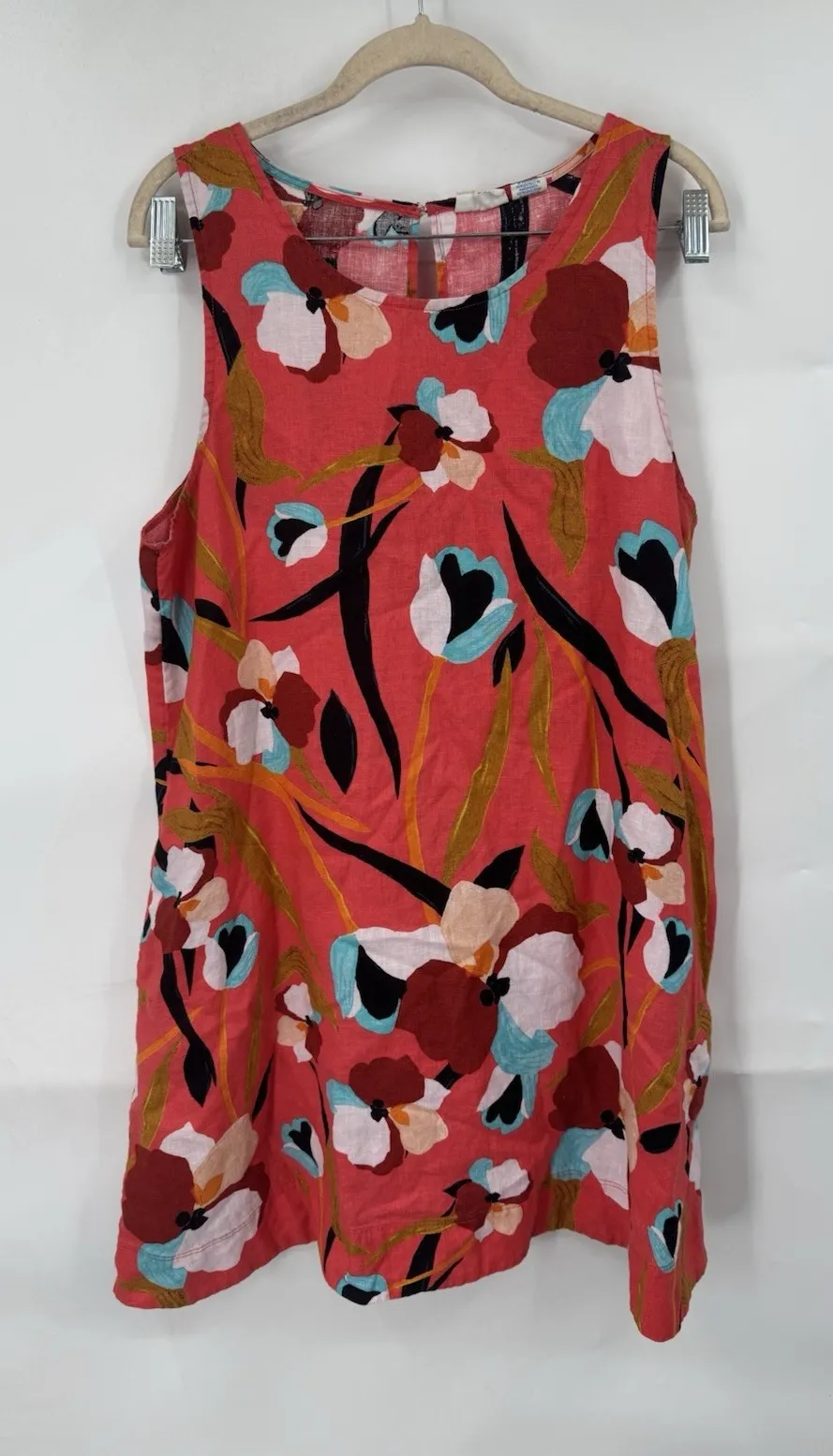 Great pre owned condition. Has pockets. Keyhole back. Size large. Lightweight and breathable. All measurements are approximate: 20 inches pit to pit. 42 inch waist. 36 inch length from shoulder to bottom hem. V3