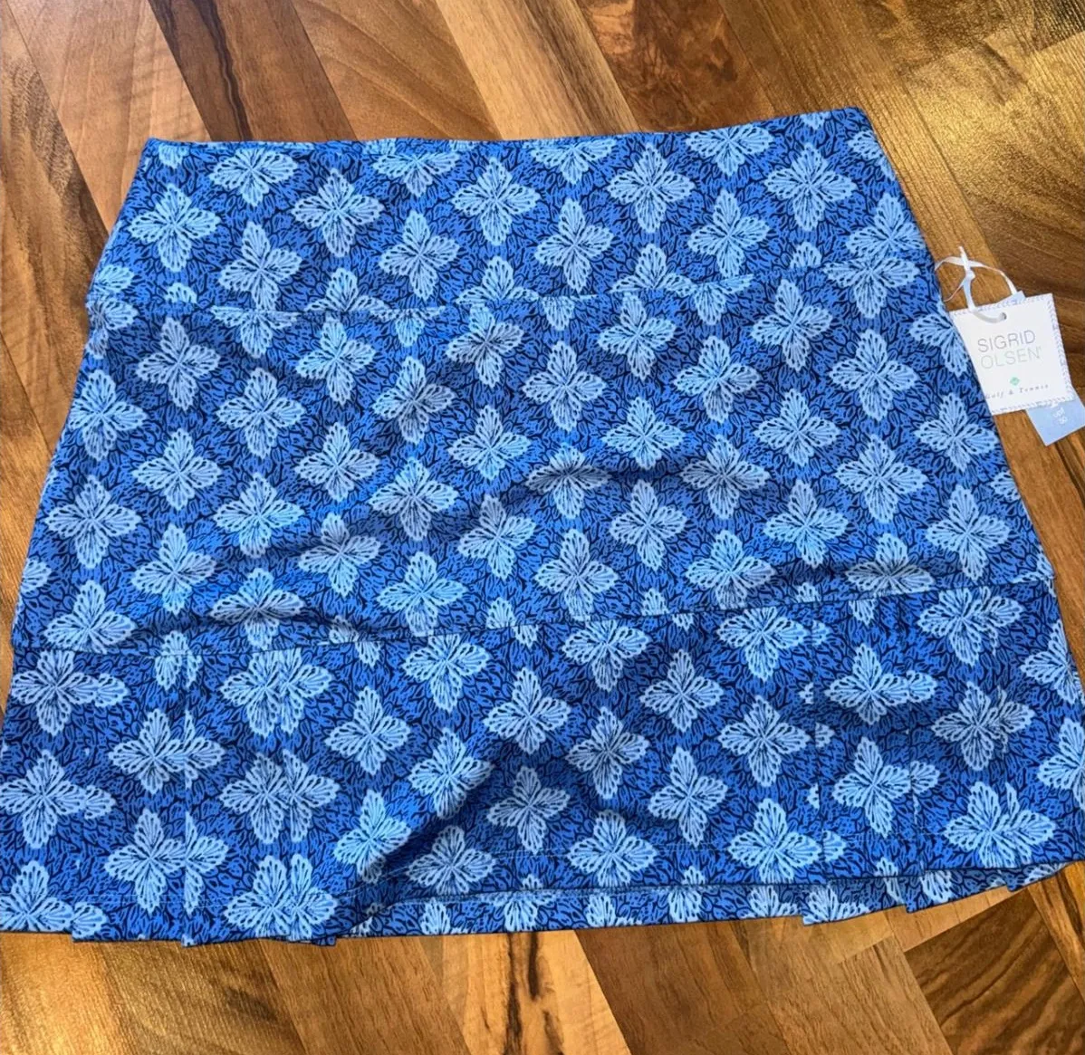 Elevate your game with this vibrant Sigrid Olsen golf and tennis skort, boasting a captivating blue butterfly print that adds a touch of playful elegance to your activewear. The built-in shorts ensure comfort and freedom of movement, while the quick-dry and moisture-wicking fabric keeps you cool and dry through every swing and stride. Perfect for a day on the golf course, a competitive tennis match, or a casual outing where style and performance are key. Style: Athletic Type: Skort Department: Women Material: Polyester Skirt Length: Short Performance/Activity: Golf Closure: Pull On Occasion: Activewear, Casual Pattern: Geometric Fit: Athletic Accents: Pleated Features: Quick Dry, Pockets, Moisture Wicking, Sun Protection, Lightweight Season: Summer, Spring Keywords: Sigrid Olsen, golf skirt, tennis skirt, athletic skort, butterfly print, quick dry, moisture wicking, UPF 50, activewear, sporty, performance, golf, tennis, athleisure