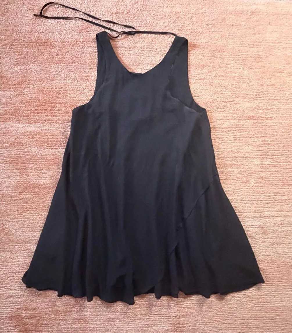 Black halter midi dress by Silence + Noise (Urban) with an elegant wrap-style front. The back has a... Show more