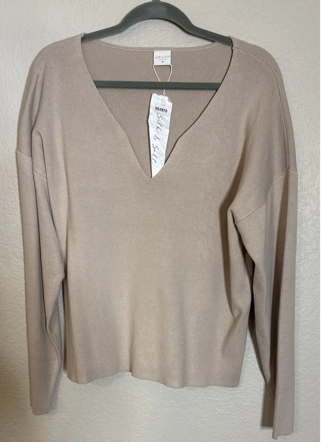 Silk & Salt Womens Medium Tan V Neck Long Sleeve Sweater Capsule Minimalist NEW - $30 New With Tags - From Andrea