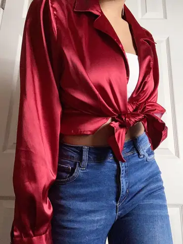 “Silk” Red Button Down Shirt Size L - $8 (77% Off Retail) - From Kalia