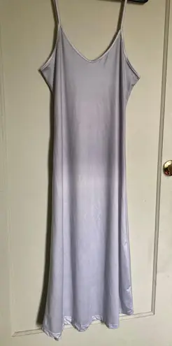 Cute! Doesn’t fit me. Does have a couple small stains not exactly sure how they got there. Didn’t try to get them out but I’m sure they would come out. No tag but it looks like a small! I’d say it’s like a silvery/lavender color