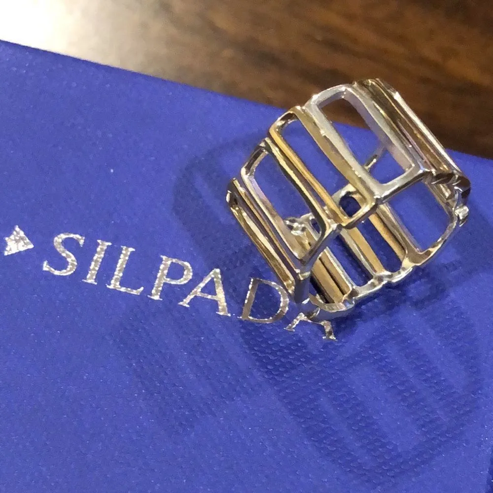 SILPADA Sterling Silver and Goldtone Open Framework Bicolor Ring SILPADA Two Tone Sterling Silver and Brass Open Framework Ring SILPADA Sterling Silver Ring Marked: 925, Silpada’s Mark Style: R3486 Sold Out Cigar Band Astley Ring With Cut Outs Modern Styling Brand New With Box Availability: Sizes: 6 Measure: 6-1/4 As this is a taller ring measuring 1/2” high, the 1/4” helps accommodate for the additional height. Ask Questions and Request Additional Photos, Measurements as Needed Color May Vary Based On Shadows, Lighting, Monitor, Display Settings $175