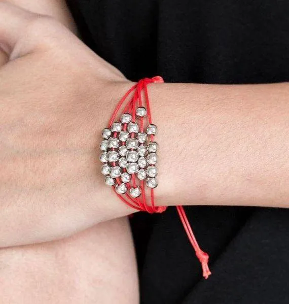 silver beads are threaded along row after row of shiny red cording around the wrist - $8 (46% Off Retail) New With Tags - From Misty