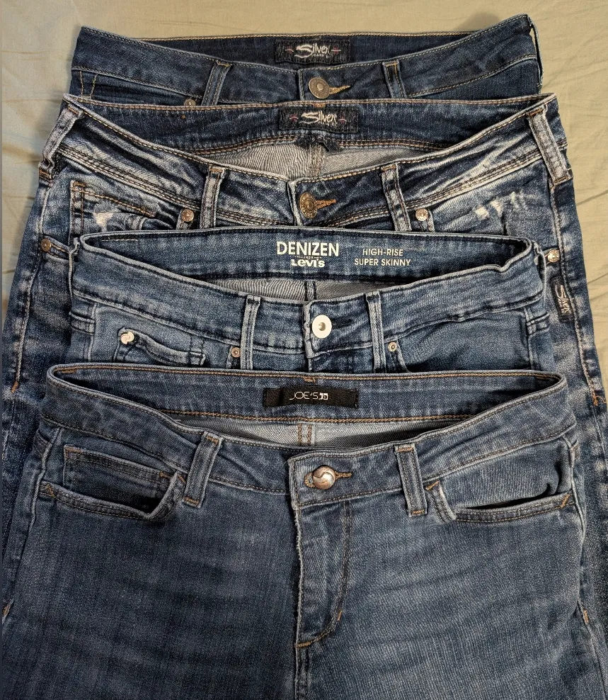 . Preloved jeans in great condition. The lot includes the following: Silver Jean Co Sam Crop Silver Jean Co Bleeker Skinny Joe's Jean Mid Rise Skinny Denizen High Rise Skinny Offers and bundles welcome, great for trying different brands.