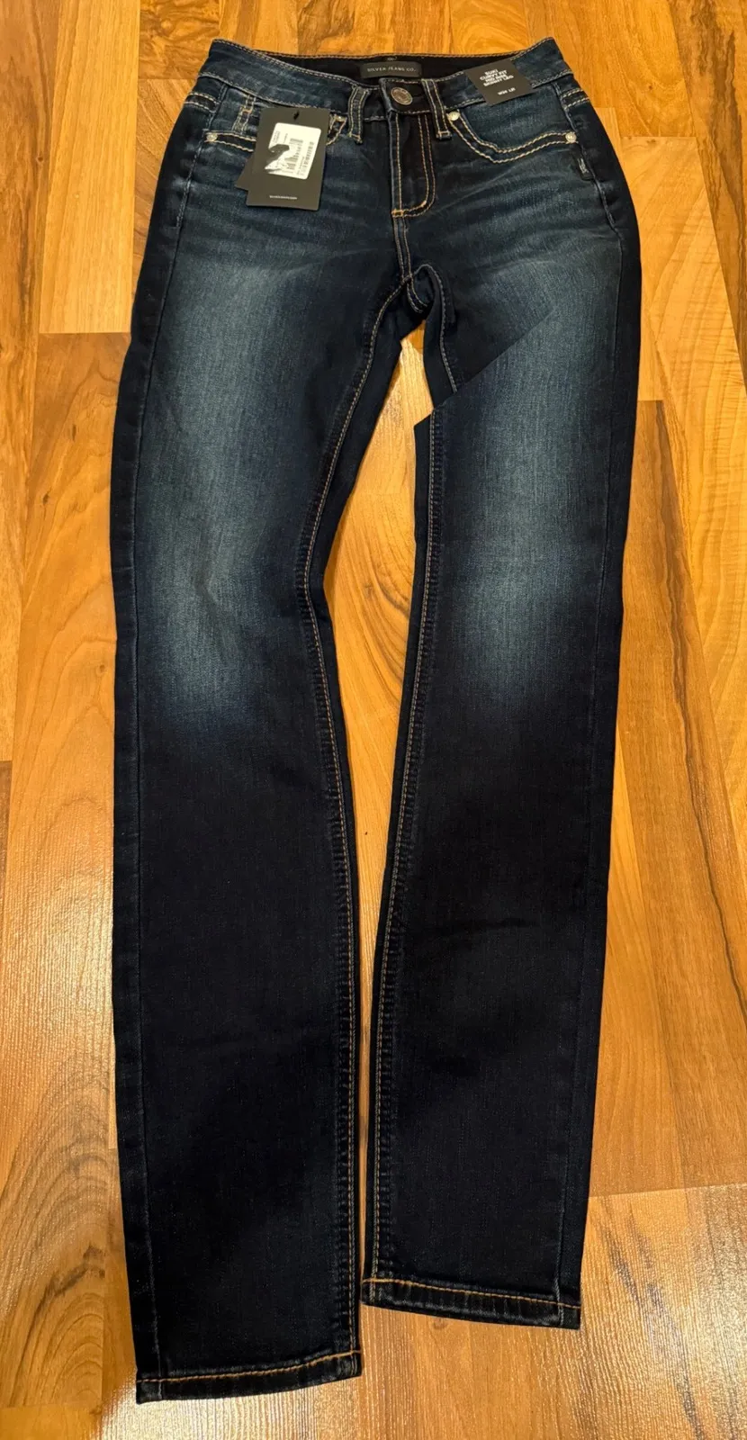 The dark wash denim offers a sleek and versatile foundation, while the curvy fit ensures a comfortable and flattering silhouette. The mid-rise design provides a modern and comfortable fit, perfect for pairing with your favorite tops and sweaters. These jeans are ideal for casual outings, weekend adventures, or even dressing up for a night out with friends. Style: Skinny Color: Blue Department: Women Type: Jeans Fabric Wash: Dark Accents: Button, Logo, Embroidered Features: Stretch, Mid Rise, Shaping, Comfort, Pockets Fit: Slim Pattern: Solid Rise: Mid (8.5-10.5 in) Fabric Type: Denim Inseam: 31 in Material: Cotton, Spandex Waist Size: 24 in Closure: Button Keywords: Silver Jeans, Suki, Curvy Fit, Mid Rise, Skinny Leg, Dark Wash, Denim, Jeans, Womens Jeans, Size 24, Length 31, Designer Jeans, Slim Fit, Comfortable Jeans