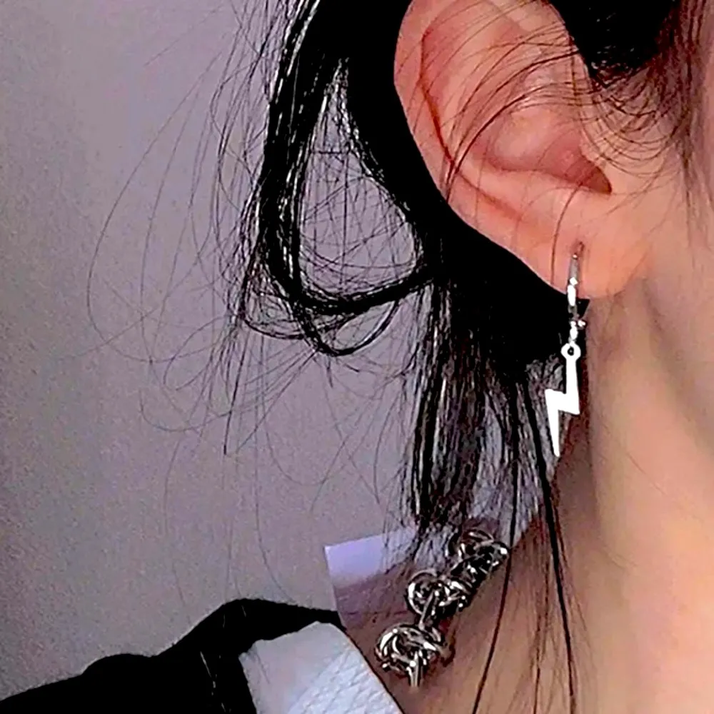 Silver lightning bolt earrings metal rock grunge gift new teen wife girlfriend - $31 New With Tags - From Terra