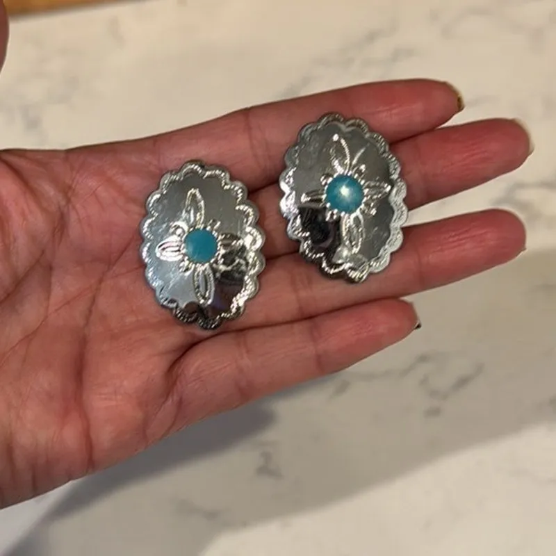 Silver tone faux turquoise conch earrings western NFR rodeo classic chic - $18 - From Krystal