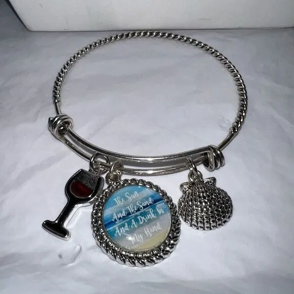 Silver Tone “The Sun and The Sand and a Drink in My Hand” Charm Bangle Bracelet Silver - $14 - From A Little