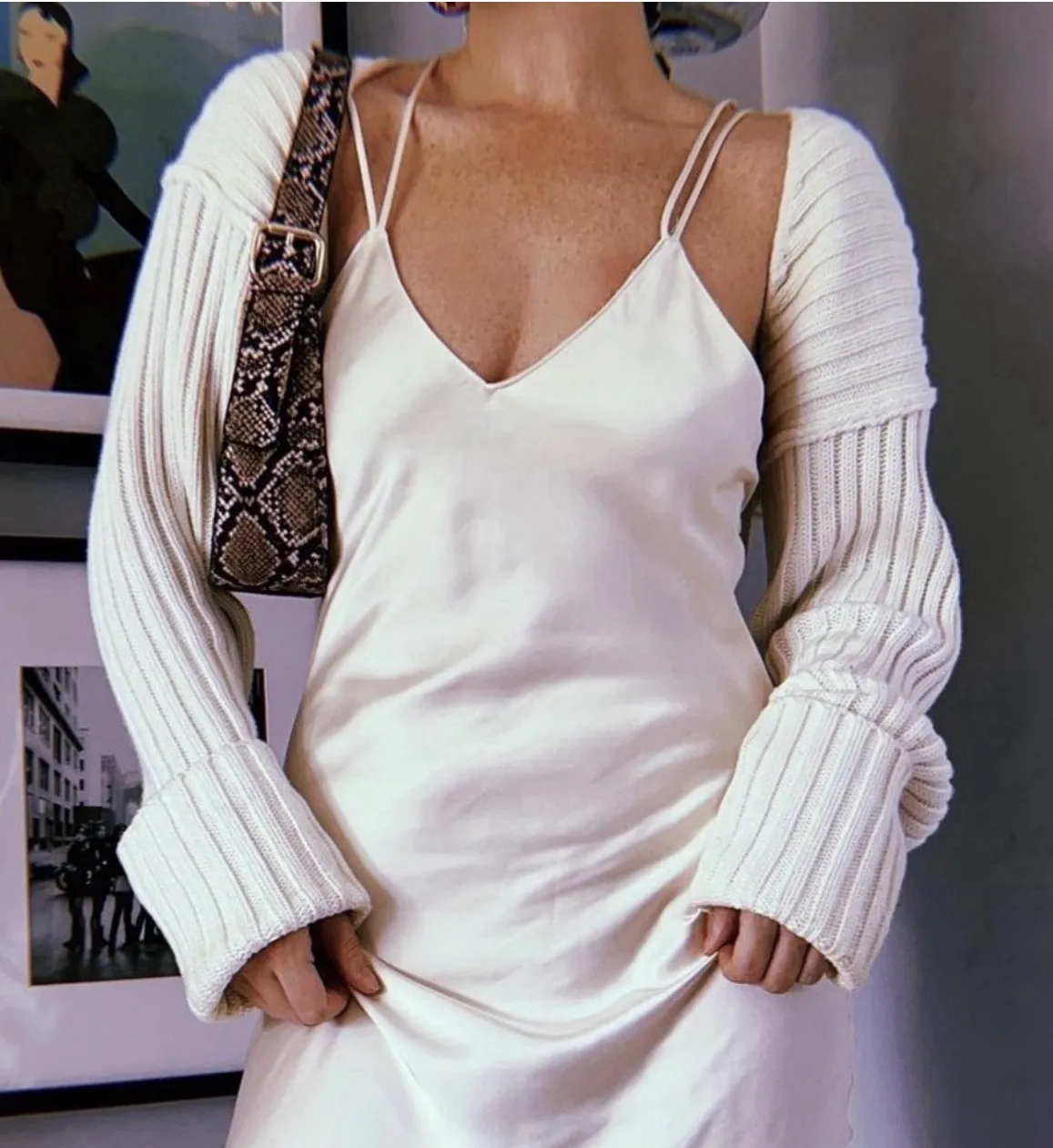 This is the cult-favorite SIMONETT Sleeve Sweater Shrug in a versatile cream/neutral beige color. This piece is designed to be worn over a tank top, camisole, or slip dress, offering warmth for the arms while creating a unique, fashion-forward layered look. Features • Style: Cropped Bolero / Shrug / Arm Warmer Sweater • Knit: Distinctive wide ribbed knit construction. • Sleeves: Extra-long sleeves with wide cuffs, often styled as rolled-up. • Fit: One Size fits most due to the open-front design. • Fabric: Soft, medium-weight knit blend (60% Cotton, 30% Nylon, 10% Wool Perfect for the Y2K, '90s fashion, balletcore, and minimalist aesthetics. Layer it over a satin slip dress (as shown in the example photo), a simple tank top, or a bralette. Simonett, Sleeve Sweater, Shrug, Bolero, Arm Warmer, Cropped Cardigan, Knit Sweater, Ribbed, Y2K, 90s Style, Minimalist, Layering Piece, Balletcore, Core, Statement Sleeve, Oversized Sleeve, Capsule Wardrobe, Streetwear, Cream, Neutral, Beige, Ivory, Ecru, Knit, Cotton Blend, Wool Blend,