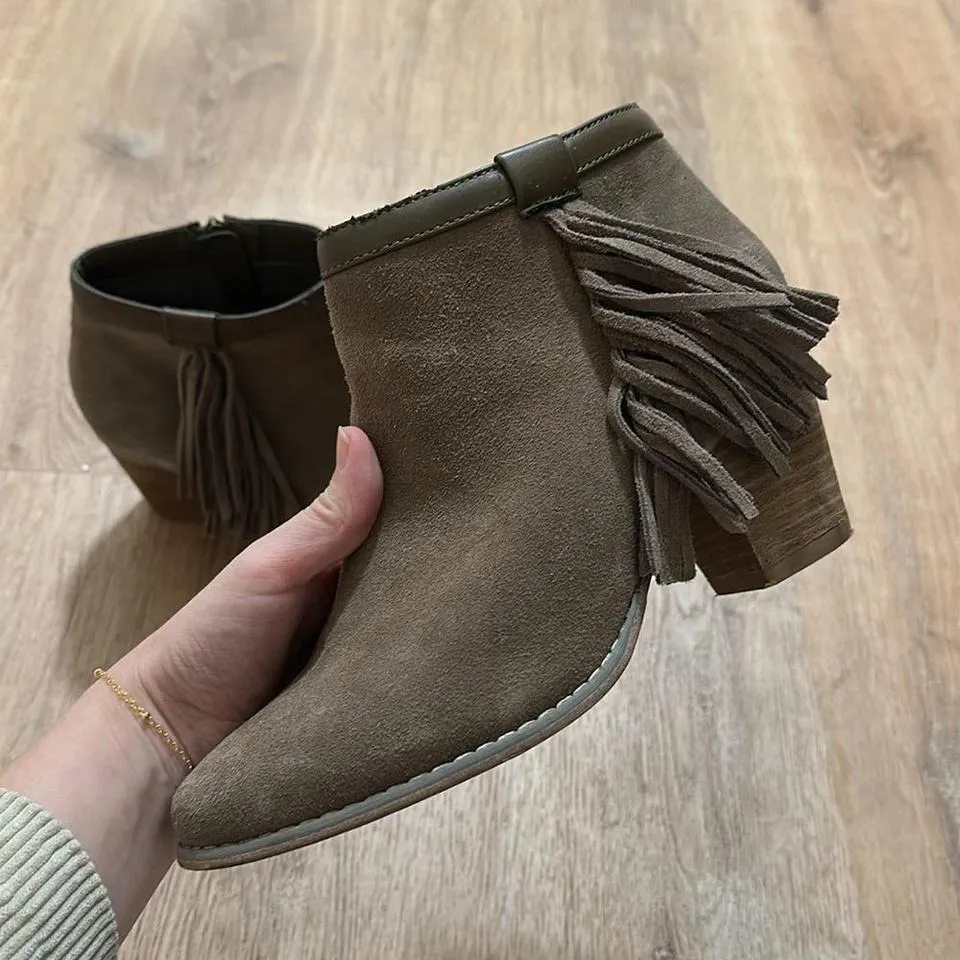 SIMPLY EMMA | Women's Taryn Tan Suede Fringe Ankle Bootie Size 7 - $18 - From BrickAndIvory