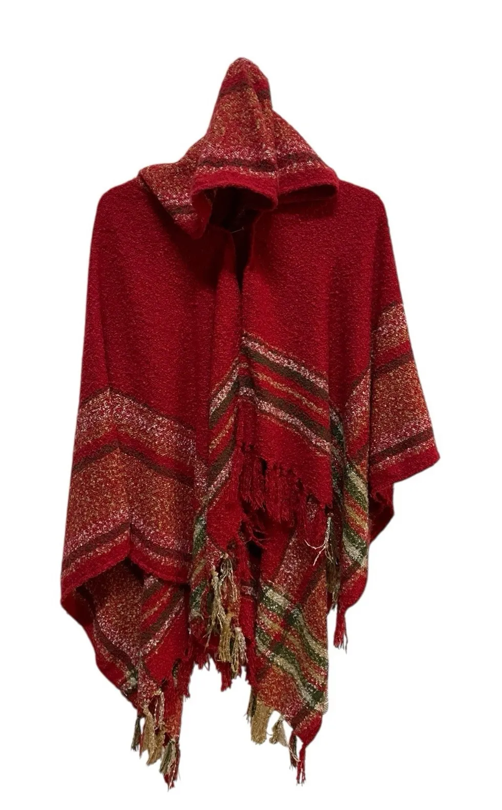 The Simply Noelle Women's Poncho Hooded Sweater Wrap Shawl is a stylish and versatile piece perfect for various occasions. Made from tight-knit acrylic fabric in a red and white plaid pattern, this one-size sweater features long kimono sleeves and a hood for added warmth and comfort. Accented with tasseled and fringe detailing, this wrap shawl has an open neckline and is designed for both casual and formal wear. Ideal for winter, fall, and spring, this artsy and colorful piece is a must-have for your wardrobe, adding a touch of beachy, party, or classic style to your look.